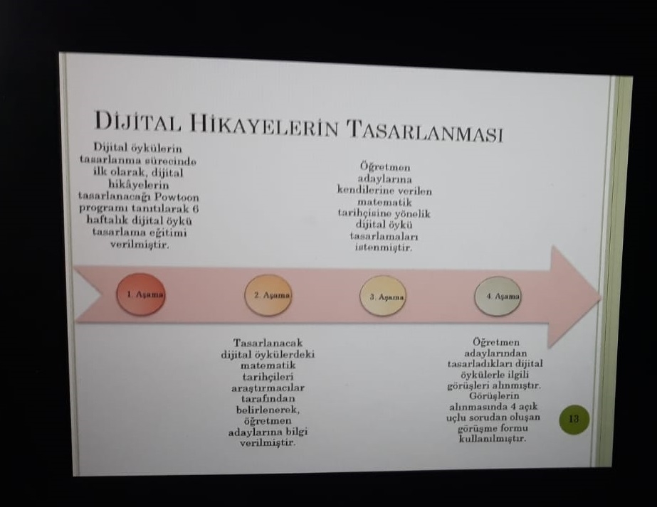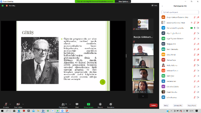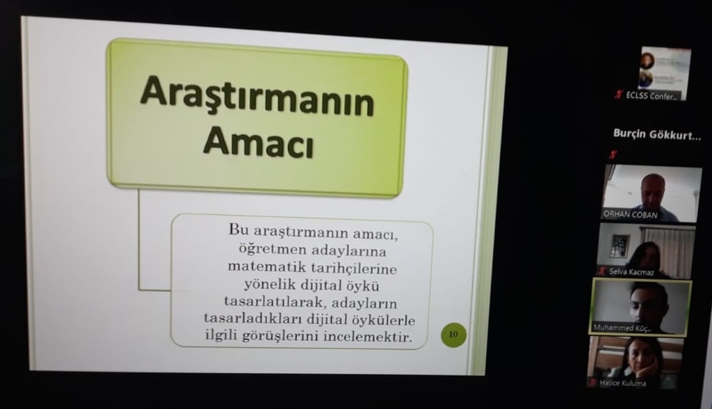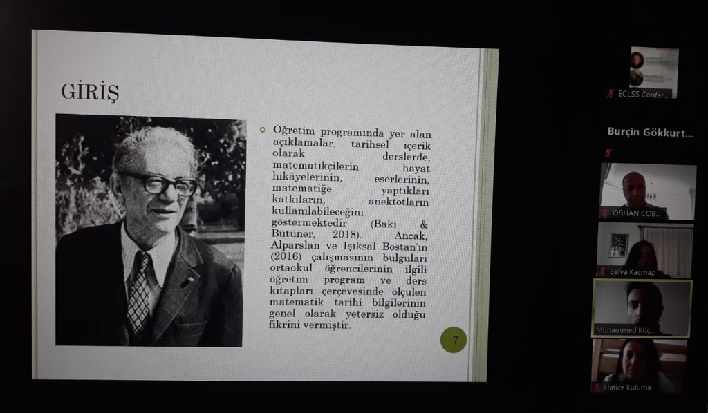 Matematik ve Fen Bilimleri Eğitimi Bölümü Matematik Eğitimi Ana Bilim Dalı lisans öğrencilerinden Muhammed KÜÇÜKOKKA, Doç. Dr. Burçin GÖKKURT ÖZDEMİR’in danışmanlığında 1919B012001185 nolu TUBİTAK 2209-A projesi kapsamında yürüttüğü projeyle ilgili olarak 9-10 Nisan 2021 tarihinde Pakistan’da gerçekleşen International Online Conference on Economics & Social Science konferansında “Matematik Öğretmeni Adaylarının Matematik Tarihçilerine Yönelik Tasarladıkları Dijital Öykülere İlişkin Görüşleri” başlıklı çalışmasını sözlü bildiri olarak sunmuştur.